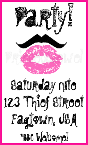 To make a very long story short, I helped the panty thief’s ex-gf made up these party posters, complete with his address, to put all over town. What a great turn out we had! The sissy panty thief was dressed as a slutty holiday hostess and had to say “Hello, how may I serve you?” to everyone who showed up at his door.